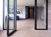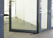 地弹簧 TS 550 IS 应用于双扇门。安全阀可防止剧烈冲击。TS 550 IS 也可用于两个门扇宽度不同的门。