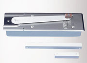 带连杆和滑轨的闭门器只可在带承重合页的门上使用。两种闭门器的闭锁轴均不突出外面,连杆非常扁平,安装时与地面距离 9 mm即可使门的打开角度达到 180° ,但却不会形成洞眼。安全阀可防止剧烈冲击。