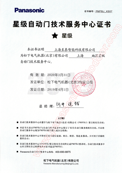 松下自动门防伪查询电话:400-8155-888 (上海松下自动门技术至泰服务中心电话:400-690-8875) |