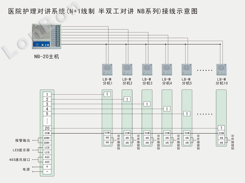* 分机与主机间是无**性的N+1芯线连接。