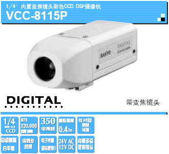 苏州多玛自动门,天津盖泽,深圳必盛,广州瑞可达,南京史丹利,苏州纳博克,杭州格屋,北京(Panasonic)松下自动门,上海自动门,杭州HID,成都西门子,重庆门禁,武汉感应门,西安旋转门,宁波GMT,无锡地弹簧,常州闭门器 当前位置:首页> 产品中心 > 安防报警系统 > 视频监控 > 三洋 VCC-8115P 1/4摄像机